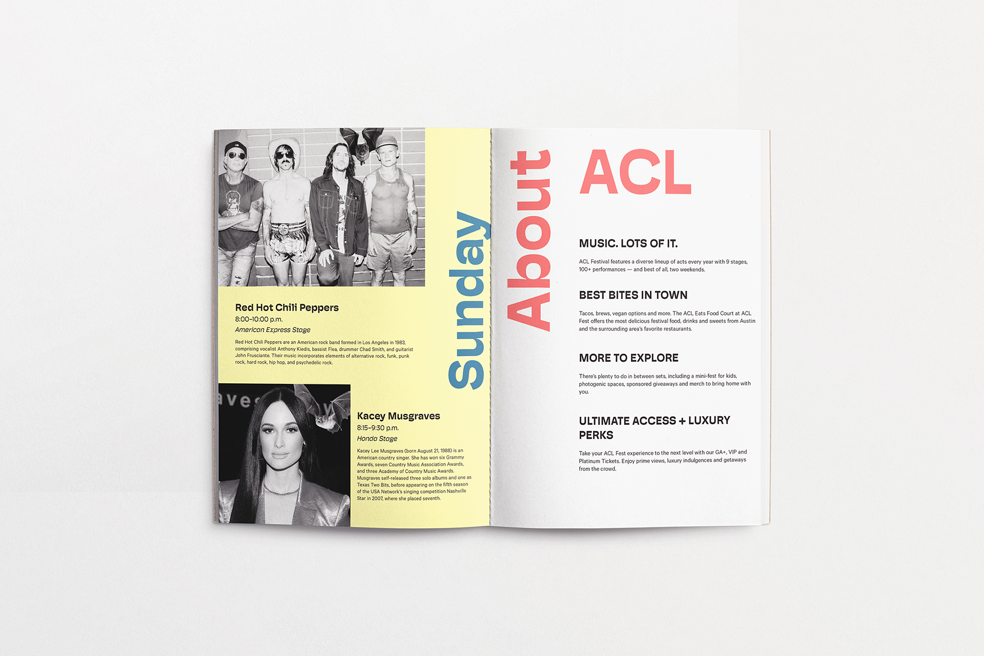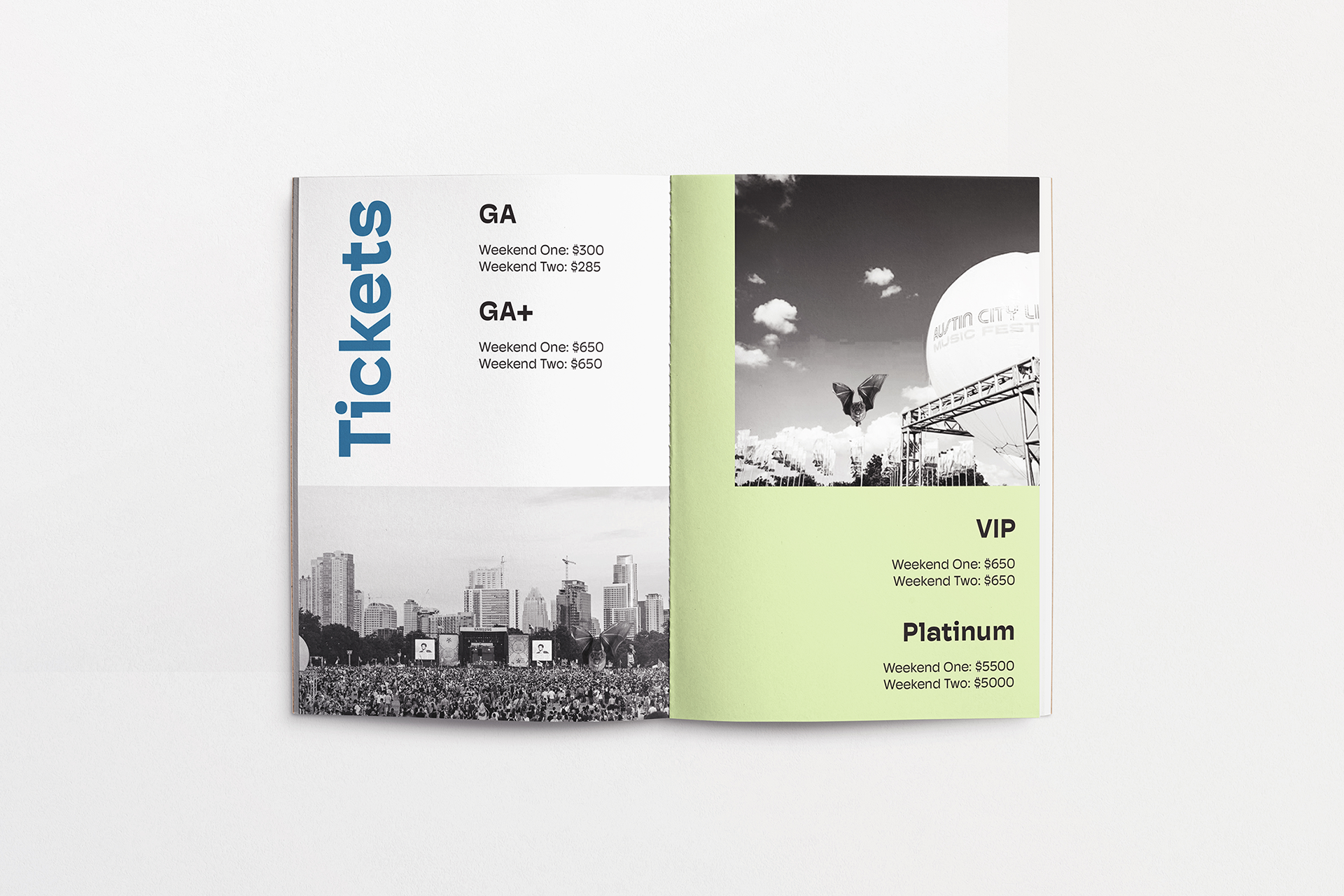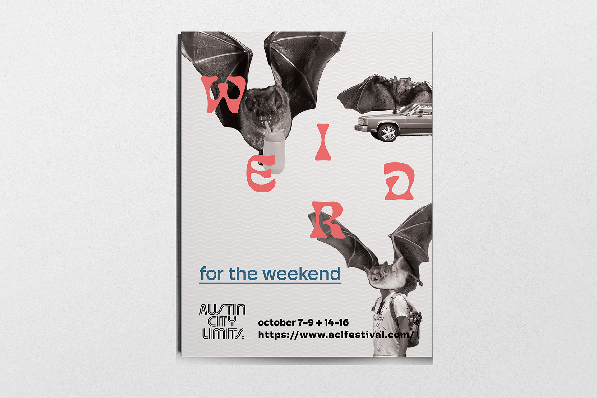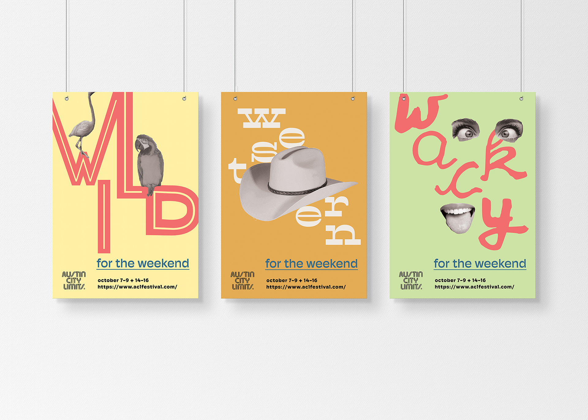 Austin City Limits is an annual music festival in Austin, Texas. The concept around the campaign created was initially “Weird for the Weekend”, based off of Austin’s slogan “Keep Austin Weird.” It was expanded to include three other “W” words that described Austin and the festival. The target audience is music lovers and people who are looking to attend the festival, both locals of Austin and tourists. The design is comprised of bright colors to capture attention and black and white imagery to draw attention to the vivid, flat color of the backgrounds and typography.